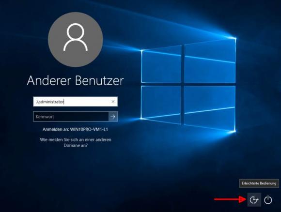 wpeutil reboot - Warten Sie, bis Windows 10 gestartet ist, drücken Sie eine Taste und klicken Sie rechts unten auf das Symbol für Erleichterte Bedienung. Nun sollte sich auf dem Anmeldebildschirm eine Eingabeaufforderung öffnen. Vor hier haben Sie nun vollen Zugriff auf Windows 10, ohne dass Sie sich angemeldet haben.